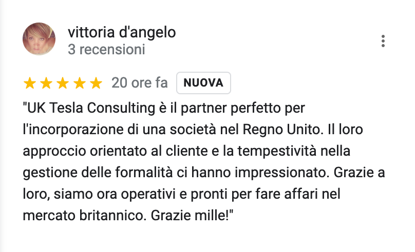 La House of Companies invierà al nostro commercialista il certificato di incorporazione e le altre documentazioni fiscali, tra cui il Company’s Autentication Code e l’UTR code ( Company Unique Taxpayer Reference) che servirà per gli adempimenti fiscali in materia di pagamento delle tasse. Da questo momento l’azienda sarà pronta per poter far business.